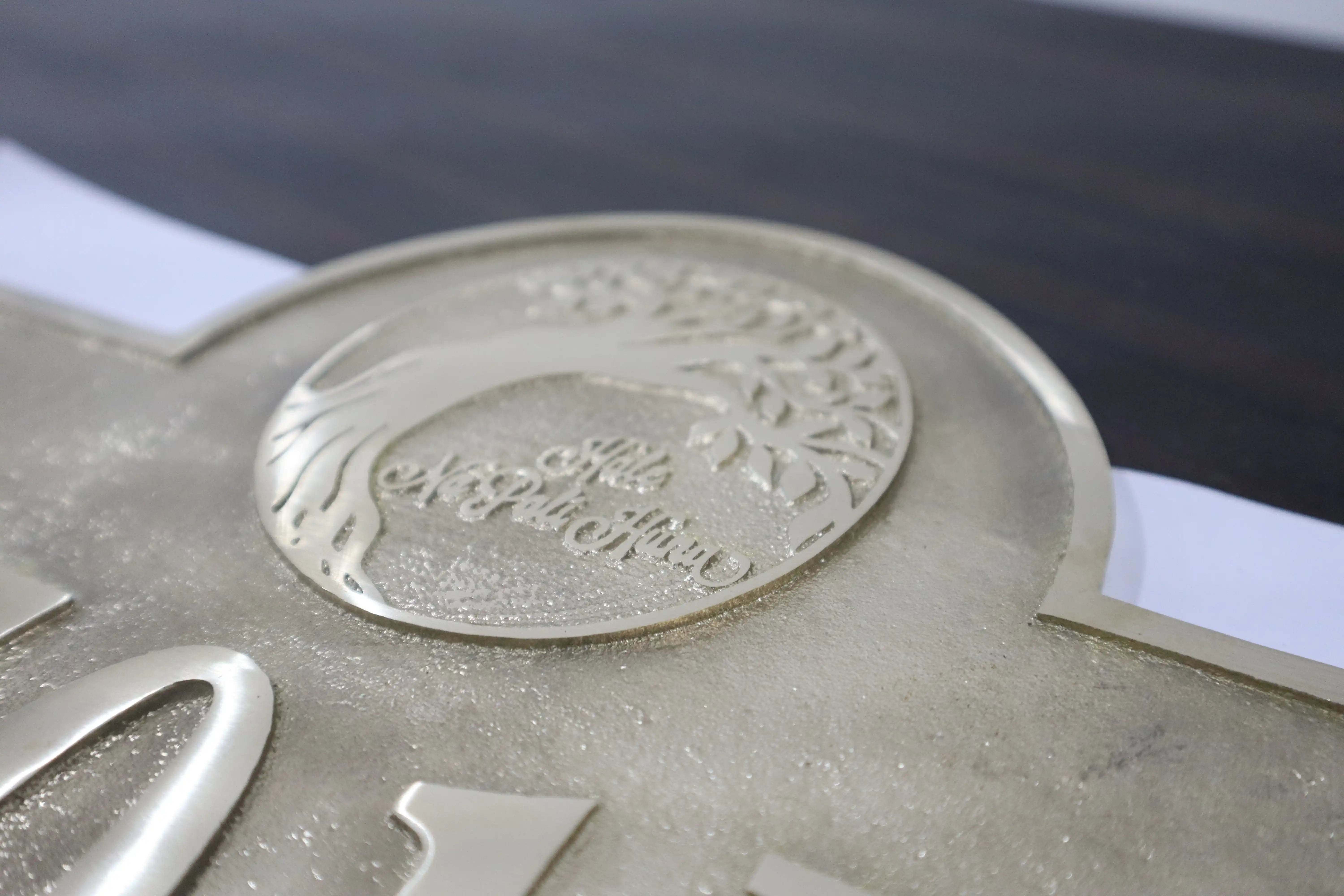 Metallic plaque with '501D' engraving on a dark surface